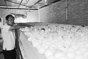 琼海发宝养殖公司年出栏肉鸭200万只,4月下旬价格从3月底每斤5.8元跌至2.5元,日销量从6000只跌到300只,孵化工作一度停止。目前价格回升到每斤4.2元,日销量回升到4000多只,孵化工作全面恢复。(图为发宝公司孵化车间)