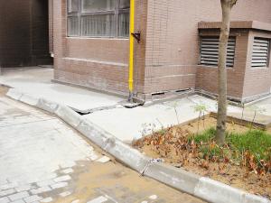 该小区共有11栋楼,除了4号楼外,小区5、6、7号楼周围的地面也出现了明显的沉降,许多楼旁的水泥地面也都出现了裂缝,为了防止沉降破坏天然气管道,这几栋楼的部分天然气管道埋入地下的部分已经被挖开。