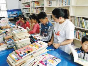 志愿者辅导孩子们阅读图书