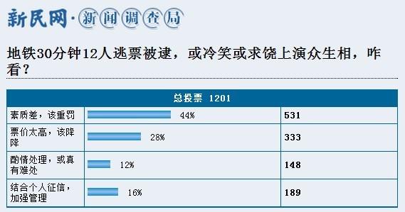 图说:超过四成网友地铁逃票该重罚。来源:新民网