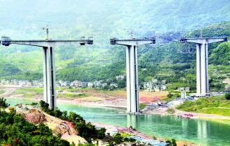 近日,笔者在杭瑞高速乌江特大桥建设工地看到,工人们正加快施工,乌江两岸,一根根桥墩拔地而起,大桥雏形初现。