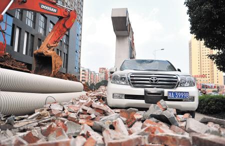 昨日上午,岳麓区枫林路一楼盘工地外的围墙突然倒塌,停在墙外的一辆价值近百万的丰田陆地巡洋舰越野车被埋,所幸当时车内没有人。下午,记者在现场看到,这台越野车前挡风玻璃被砸进去一个大坑,倒塌的围墙约2米高、4米长。围墙内的工地现场正在挖下水道,堆积了大量的泥土。“可能是土方不断堆积,压迫管道不断向外使力,导致墙倒塌了吧。”