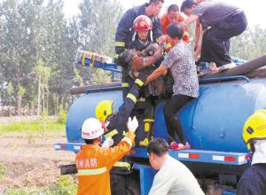 于是家人开始四处寻找。6月3日下午2时许,他在107国道与涿涞路交叉口南200米处一个大粪坑旁,发现了弟弟驾驶的那辆清粪车,但却未找到弟弟的踪影。他登上车顶想看看四周是否有异样情况时,却赫然发现弟弟竟躺在清粪车罐内,已经昏迷不醒。由于粪罐顶部开口直径仅45厘米,营救起来十分困难,他赶紧打电话报警求助。
