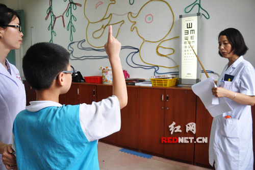 2013年6月6日是第18个全国“爱眼日”,今日上午,湖南省眼科专家带着专业仪器和志愿者前往长沙市特殊教育学校,为新入校的38名低年级盲童康复班孩子进行眼底检查和低视助视器检配与使用指导,并为盲童送去收音机帮助他们倾听世界。