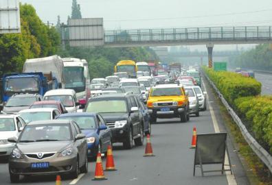 事发后,成温邛高速路上排满了车辆。据了解,由于水泥罐车侧翻后阻挡道路,成温邛高速全线从昨日9时35分开始封闭,至上午11时16分车辆通行,成都至温江段大量车辆被堵在高速上2个多小时。 华西都市报记者王伟刘陈平摄影报道