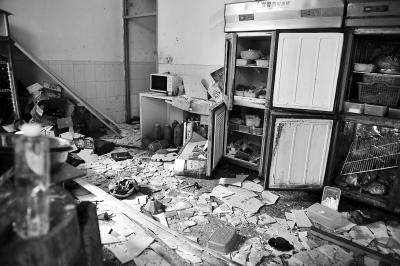 饭店厨房内一片狼藉