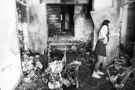 昨天上午10点,郑州市后河芦村北一街128号,几名男子跨过走廊里的满地电动车残骸,从楼里往外搬生活用品。