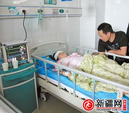 图为昨日上午,在昌吉市人民医院骨科,事故伤者肖永红的丈夫陪伴在她的病床前。(记者张孝宇摄)