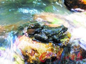 棘胸蛙,当地百姓称之为“石鸡、石蛤”,是我国特有的大型野生蛙,喜欢在深山老林无污染的溪涧穴居生活,是南方丘陵山区生长的一种名贵蛙类。(记者卜瑜 通讯员吴婷、张应明、张宇丰摄影报道)