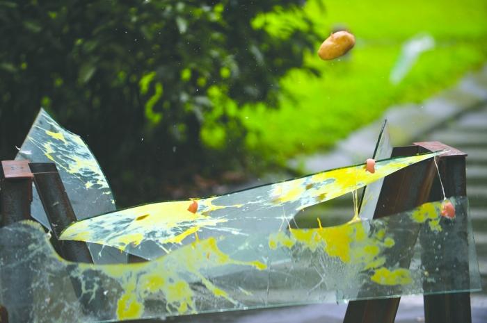 实验:二楼落下的小土豆 砸碎5毫米厚玻璃