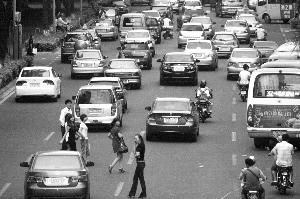 “中国式过马路”严重干扰了交通秩序。 本报记者 陈元才 摄