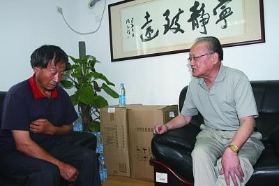 苏州见义勇为基金会会长慰问米龙飞的父亲(左)。 彭昊 摄