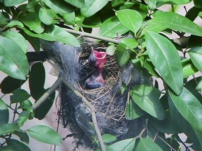 有了孩子,白头翁夫妇开始不停地在院里花丛中飞来飞去、捕捉虫子,有时是蜻蜓、螳螂,有时是西瓜、桃子,喂食给孩子。白头翁夫妇不知疲倦地往返捕捉食物,一天有时多达五十几趟,雏鸟张着黄黄的小嘴,只是不断地吃,快快地成长。仅仅一星期后,雏鸟浑身长满了暗绿的羽毛,已经是一只小小鸟了。