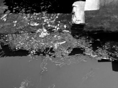 这部分湖水呈黑褐色,水面上漂浮着生活垃圾,肚皮朝上的死鱼,有的浮在水面上,有的搁浅在水下的水泥台面上。