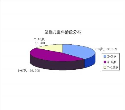 根据表上数据,记者将10岁以下坠楼儿童划分为2~3岁、4~6岁和7~10岁三个年龄段,发现2~3岁年龄段的儿童共5个,4~6岁的儿童有6个,而7~10岁的儿童则是2个,三个年龄段儿童分别占比为38.5%,46.2%和15.4%,坠楼儿童主要集中在2至6岁。