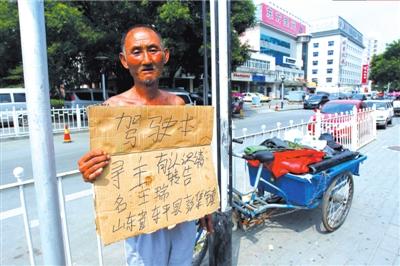 流浪老汉拾得驾照站街3小时寻失主