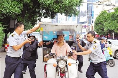 昨日下午,南宁市城市管理局协调青秀区,组织城管、公安、交警、工商等55名执法人员组成联合执法队伍,在星湖古城路口和民族大道星湖路口附近设了两个执勤点,查处非法营运“三车”(人力车、摩托车、非法营运残疾人机动轮椅车)。