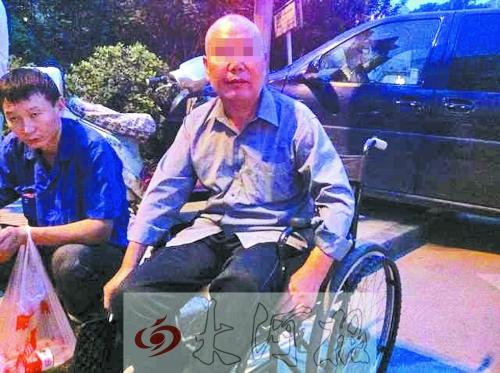 黄先生在轮椅上等了4个多小时后,暂时被接回敬老院
