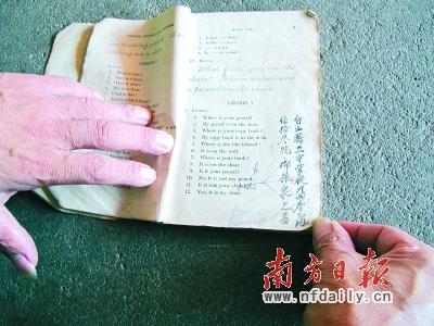 邝家保留的烈士遗物是邝光的一本中学英语课本,内有一页写着“台山县立中学校卅四春乙班五十三号邝振泉之书”。 杨兴乐 摄
