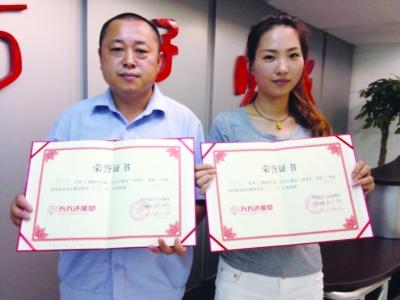 昨天下午6点多,刚刚下班的周小姐与大件出租车公司的李士年师傅,应约来到新街口新华大厦46楼的扬子晚报,获颁扬子晚报与阿里公益“天天正能量”的“正能量特别奖”。再次见到记者,两人都不约而同地连声称,没有想到自己只是做了自认为份内的事,竟会获得这样的荣誉,真是不好意思。