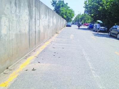 南京万达紫金明珠小区门前的星海路上划了10多个停车位,但与正常停车位有些差别,停车位靠路牙一侧画着黄实线。近日,有网友发现在这些停车位内泊车的车辆都被贴了罚单,实在有点想不通,便发微博提出质疑。
