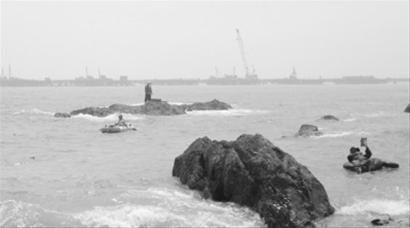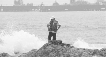 大连垂钓者遇涨潮被困礁石 市民紧张他淡定(图)