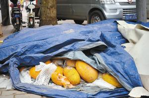 记者看到,这堆烂瓜附近白天的时候人来人往,人们路过这里的时候都只能掩鼻而过,“就在市场边,这里人流量这么大,一直就让它们这么烂着肯定不是事儿,太不卫生了,管理部门应该及时过来清理了。”-文/图记者付垚 实习生王珊 曹娜娜