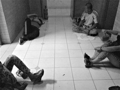 昨日,拍卖公司办公室大门紧闭空无一人,卖家或坐或躺,在楼道里等待消息。新京报记者 韩萌 摄