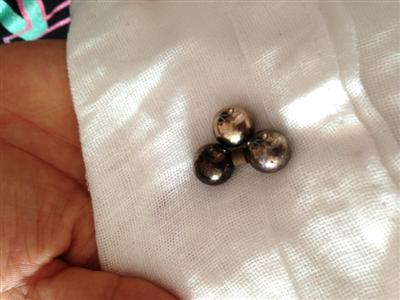 据赫赫的妈妈说,这3个铁球是她给赫赫买的磁铁棒玩具,没想到孩子把铁球和磁铁都吃进了肚。(魏然 记者 张海霞)