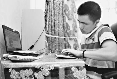 王泽光每天在卧室里的电脑桌前工作 记者李永刚 摄