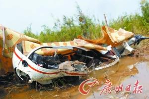 昨天上午记者再次来到事发现场,坠毁飞机已经被人用黄色凉席覆盖,旁边有散落的头盔和从飞机上掉下来的座椅。据知情人说,遇难的潘姓机师和郗姓学员的尸体已经于事发当晚运送至殡仪馆。飞机主要零部件前晚运回了沙湾基地,现场的工作人员在湿地上搭木块帮助钩机前往坠机地点处理残骸。其他飞机残骸仍遗留在原地,有多名保安24小时看守。