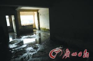 此前,记者曾经来到冠城大厦的现场看到,楼下裙楼的商用物业已全部开业。五楼以上的住宅,A、B座和C、D座却明显有着极大的反差,虽然外墙都有马赛克,不过C、D座的门和窗都没有安装。记者乘商用电梯登上五楼平台,看到烂尾的C、D座内部地上满是发臭发黑的积水,除水泥钢筋框架已完成外,没看到其他配套设施,没通水电,住宅电梯根本无法使用,也无工作人员在出入口把守。