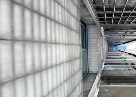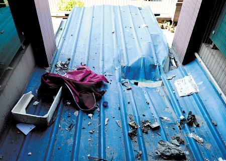 ↑孩子坠下时巨大的冲击力将2楼雨棚砸出一个洞。幸好雨棚的缓冲让孩子奇迹生还。