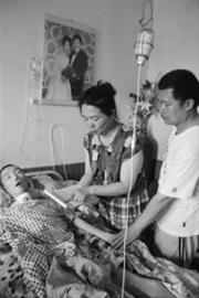 躺在病床上的褚庭园面色苍白,双眼紧闭,骨瘦如柴。刘淑芬曾在医院工作过,懂得些医学护理知识。她边用棉签清洗儿子牙床边呼喊着:“儿子乖!妈妈给你洗牙齿,儿子!你快睁眼看看老妈,妈不能没有你啊!”眼泪滴落在儿子脸上,可褚庭园一点反应也没有。