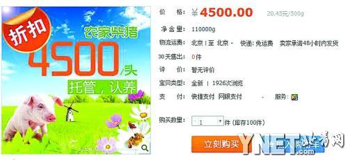 市场现生猪“认养”模式:4500喂养小猪 年底吃肉