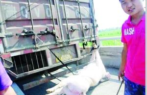 货车司机高速路遇迷路猪 牵车尾烈日炙烤变“烤猪”