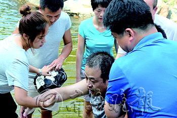 回忆起落水时的情景,这位体重190斤的壮汉不禁泣不成声。“我不会游泳,落水后几经挣扎都浮不起来,最后一个念头是‘也许我的生命就这么结束了’,这时,我生命中的贵人夫妻出现了,如果没有他们,我真的就……”讲到动情处,王志成几度哽咽。