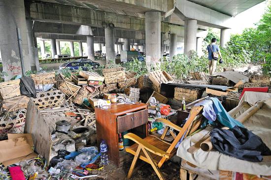 佛山立交桥林立 部分桥底成流浪者暂居所(图)