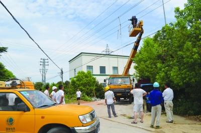 昨天上午9点多,在南京高淳区桠溪镇,一辆施工吊车在吊混凝土时,不慎踫上高压线,造成短路烧坏了电线,也导致了这条线路上的2000多户居民家中断电,所幸事故没有造成人员伤亡。而为确保高温居民正常用电,故障发生后,当地供电公司迅速组织施工人员赶赴现场抢修。