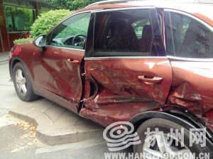昨天下午3点半左右,他开车经过环城东路与老浙大横路岔口时,小面包突然失控,撞向道路中央隔离带,冲入对向车道。迎面撞向一辆保时捷卡宴,卡宴躲避不及,翻身的小面包车顶撞向了卡宴的左侧车门。
