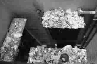 大厦天井通道污物堆积 蟑螂横飞臭味熏人