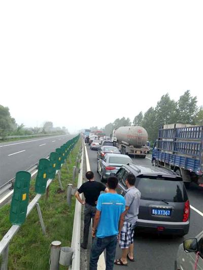 事故造成交通拥堵(微记者 张家洋 记者 肖劲彪)