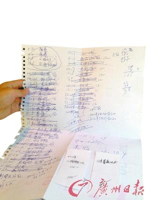 舞台 廖志成称,自己记录下每天去“上班”的路段或铺面,收到报酬后再一个个划掉。