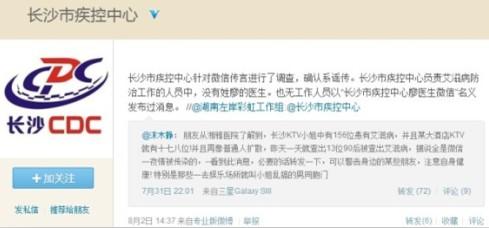 近期,“长沙KTV小姐患艾滋病”的消息被在微博、微信及论坛上大量转发。一位自称“长沙市疾控中心廖医生”的人讲到:“湘雅医院到长沙KTV检测,发现小姐中有156位患有艾滋病,并且某大酒店KTV就有十七八位!并且在向普通人扩散,昨天就有13位90后被查出艾滋病,据说全是玩微信一夜情被传染的。”