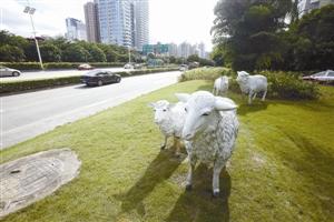 在深圳滨河大道福田路段,有一群白色绵羊雕塑掩映在绿化带中已两年有余。这群羊雕塑的出现,吓着了某些市民,“羊出现在那儿就很奇怪,每次开车路过都被吓到,”新浪微博网友“为法语努力的DCW深圳小兔Lily”表示,减压她没看出来,惊吓倒是不少,反而成“都市增压”。深圳雕塑院院长孙振华对记者说,我经常也被问到,这群羊是不是我们雕塑院做的。其实不是,但是我本人还没亲自看到,但的确已“名声在外”。无独有偶,深圳仙湖植物园则出现了另外一群动物雕塑。市民王女士说,这些狗和猪成群出现在这里,觉得好奇怪!而且模样也挺怪的,晚上碰到有些吓人。此外,某购物广场肥臀购物女、大梅沙的“鸟人”、深圳湾口岸附近掩映在绿化带中的“大鹏展翅”等雕塑也纷纷遭到吐槽。