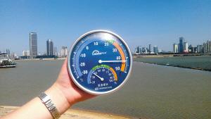 赣江边上,气温直逼42℃。