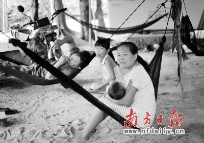 永兴岛上的渔民,木屋和吊床是常见的风景。 记者 肖雄 摄