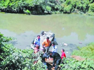 轿车失控栽进水塘 丈夫和怀孕的妻子双双受伤