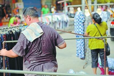 昨天傍晚,大夹街上,小贩汗流浃背地准备夜市出摊。记者 胡伟鸣摄