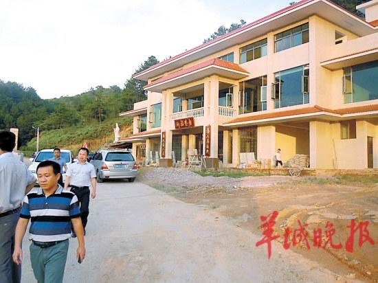 从墓园办公大楼西行,一条超7米宽的水泥路延伸约1.2公里,直达新建的骨灰楼。记者沿途发现,原有的山体已消失,被伐树木东倒西歪。梅县国土局证实,该骨灰楼(含门坪)超1000平方米,都属于违法所建。梅县国土执法大队的王队长对记者说,去年7月这里正进行建设时,国土局曾派员查处,并发出《责令停止国土资源违法行为通知书》,没想到现在已建起一栋骨灰楼。